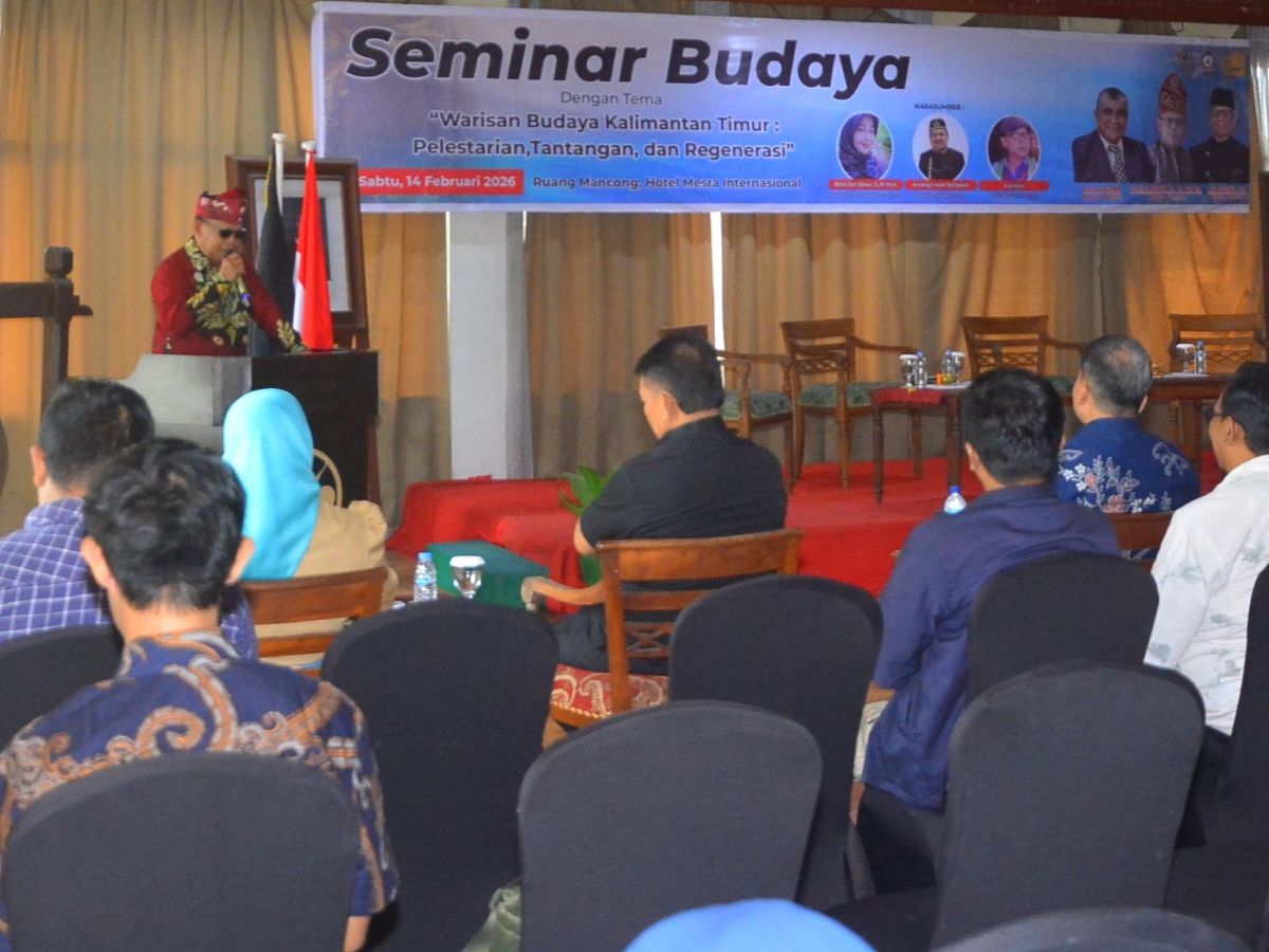 Pernyataan itu disampaikan dalam Seminar Budaya bertema “Warisan Budaya Kalimantan Timur: Pelestarian, Tantangan, dan Regenerasi” yang digelar di Hotel Mesra Internasional, Samarinda, Sabtu (14/2/2026). Acara menghadirkan Awang Irwan Setiawan (Budayawan Kaltim), Hamdani (Budayawan Kaltim), serta Ririn Sari Dewi (Kepala Dinas Pariwisata Kaltim). Acara dibuka oleh Staf Ahli Gubernur Arief Murdiyanto.